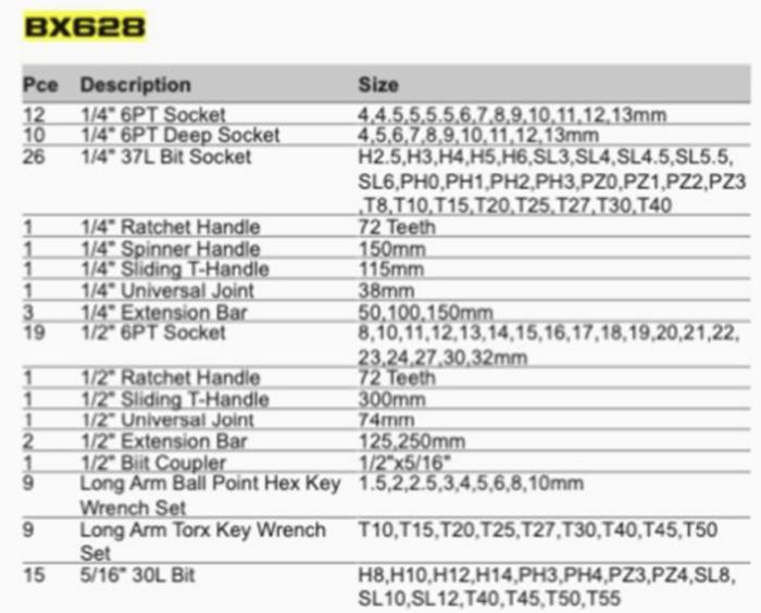 Decrease quantity for 1/4" & 1/2" Socket 113 Pcs Set