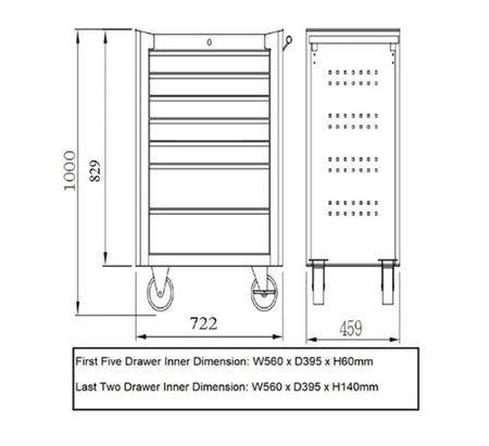 | Last Two Drawer Inner Dimension: | W560 x D395 x H140mm |