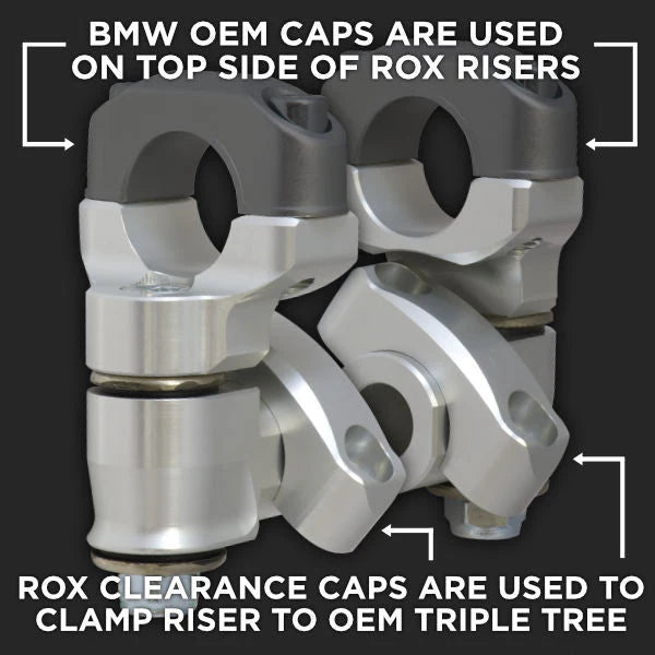 - These bar risers are designed to use your stock BMW Caps on the top of the risers, as shown in the picture to the right. These risers come with replacement caps that will be used to tighten the stem of the riser to the OEM triple clamp.