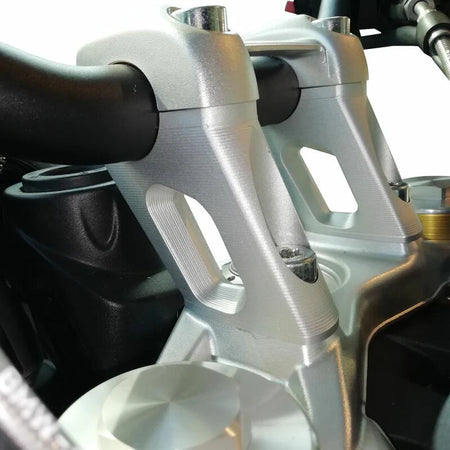 This pair of handlebar risers is specially made for BMW R NineT (will fit to all R NineT models - exception: Racer)! It is easy to mount and will fit perfectly. The upper and closer position of handlebar makes the bike easy to handle and guaranties a relaxed and upright riding posture. The mounting is simple in seconds.