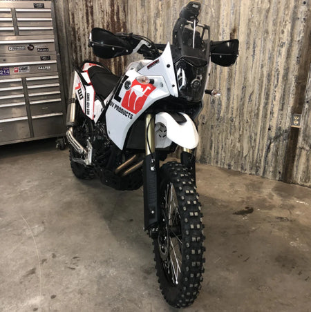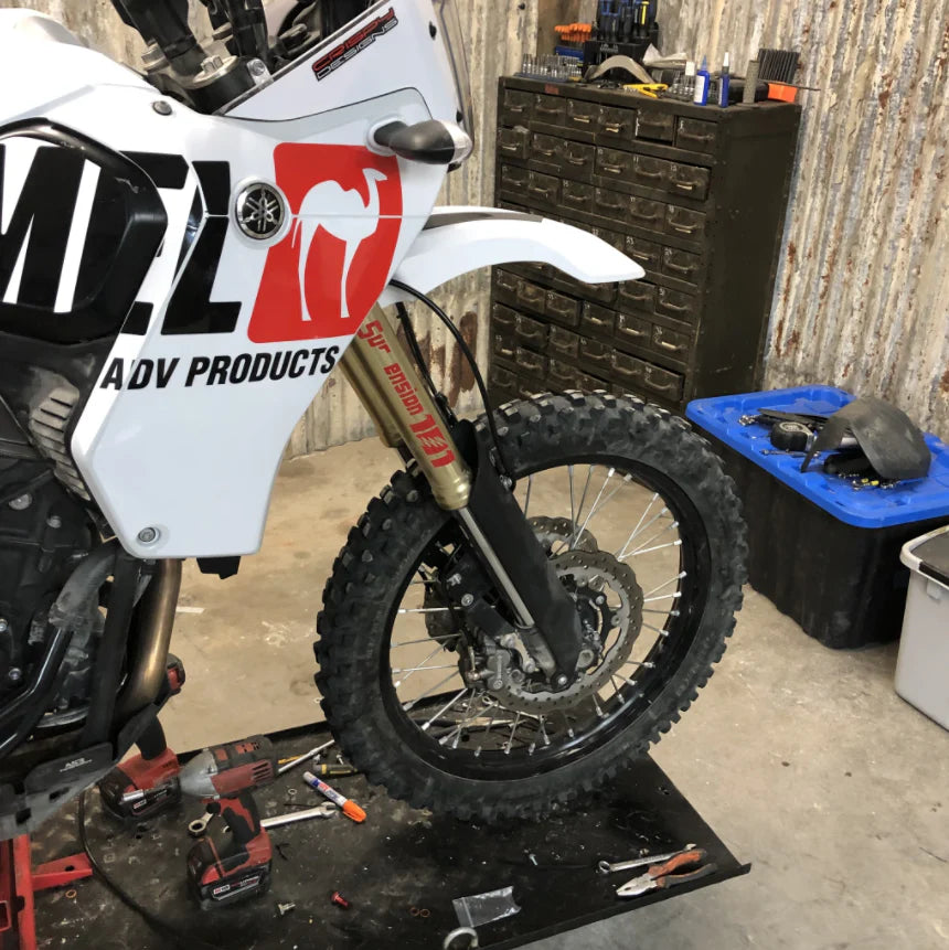 Some people love the look of the factory low fender on the Yamaha 700 Tenere, not us, we much prefer the more aggressive look of the high supermoto style fender! Whether you like high fenders just for the look or because you don't want the front wheel balled up when riding in sticky mud, we have you covered!