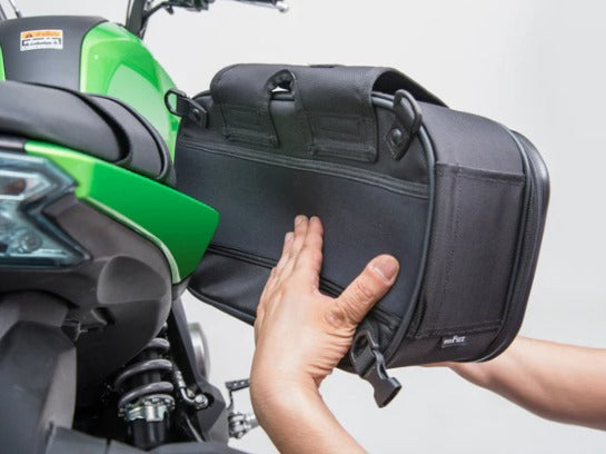 Multi-Fit 3D design — neoprene-lined panels wrap snugly around curving tail fairings to ensure snug, secure fit.