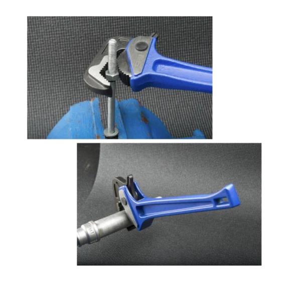 - For a fast, automatic clamping action: the greater the force applied to the wrench, the harder the jaws grip the pipe.