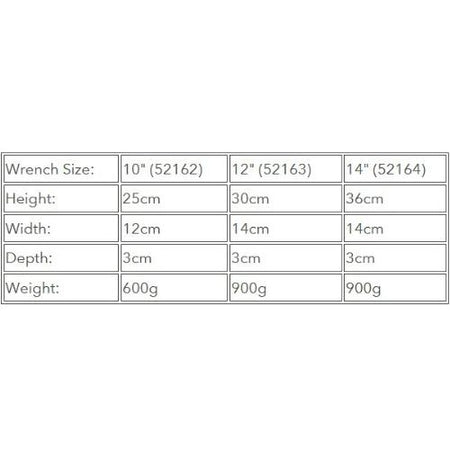 | Wrench Size: | 10" (52162) | 12" (52163) | 14" (52164) |