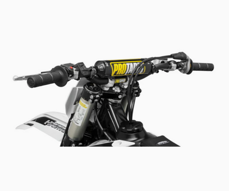 The Fuzion Handlebar is a new concept in high-performance control systems. The revolutionary flex locking system allows riders to choose between a stiffer, more controlled handlebar feel or a softer more shock absorbing feel depending on terrain conditions. Changing the bar from "Locked" to "Unlocked" takes only seconds. The bar itself utilizes ProTaper's exclusive aluminum alloy computer profile in a 4mm wall design for the ultimate in lightweight strength.