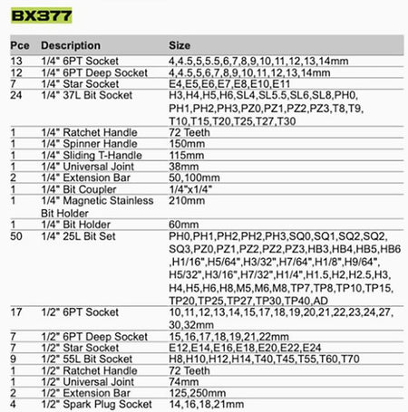 Set Tools Socket 163 PCS 1/4" & 1/2" DR. Socket Set