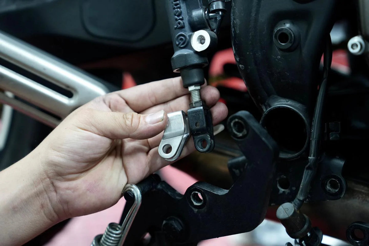 The issue with the bike's rear brake is not swelling of the OEM rubber brake lines, it's not the compound of the brake pads, and it's also not the quality or size of the master cylinder or calliper. There are several issues with the OEM pedal, some small, some big. "The Fix" addresses all of them!