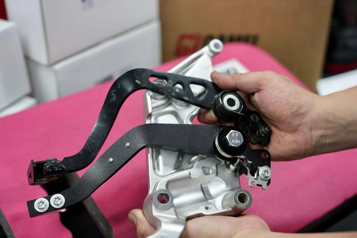 - Corrected leverage ratio reducing pedal travel by about half compared to stock
